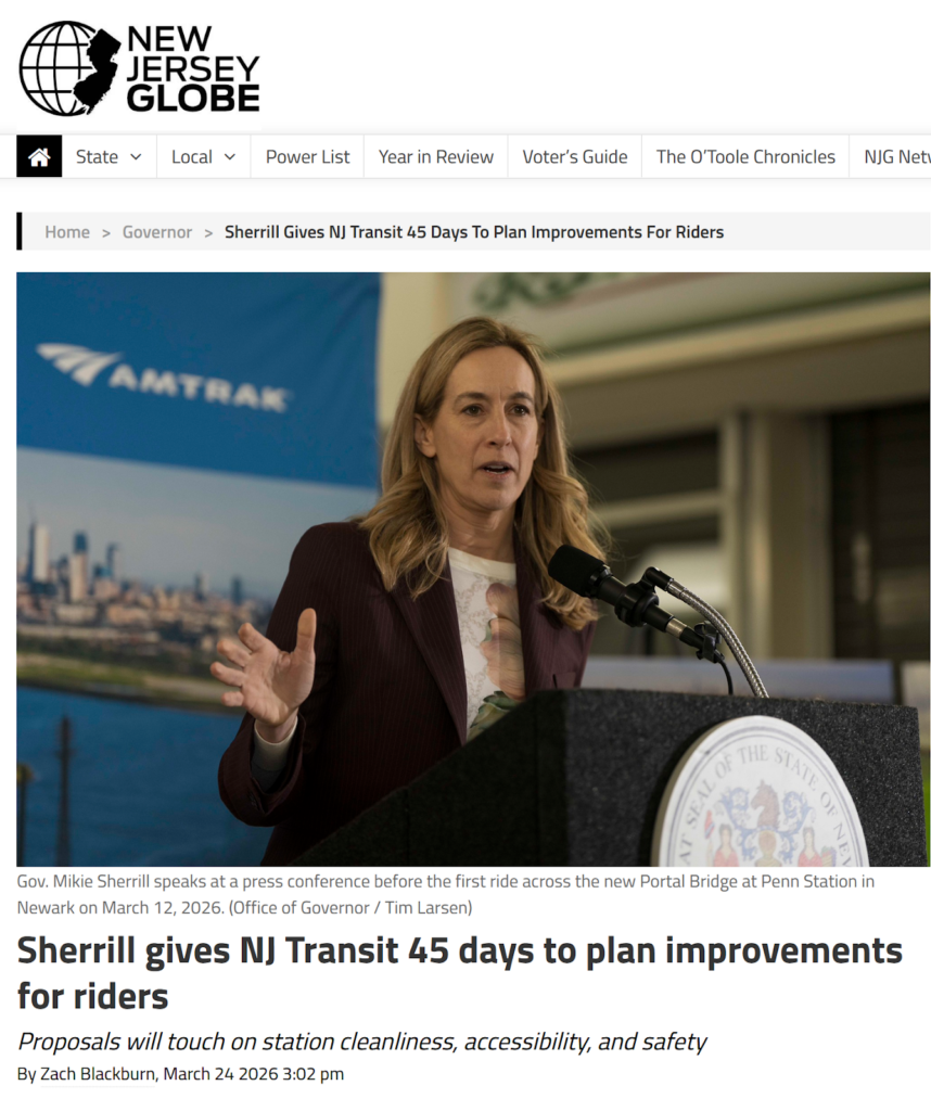 The Newark Times. (2026, March 25). Riders first: Governor Sherrill signs executive order demanding accountability for NJ Transit rail and bus service. https://thenewarktimes.com/riders-first-governor-sherrill-signs-executive-order-demanding-accountability-for-nj-transit-rail-and-bus-service/