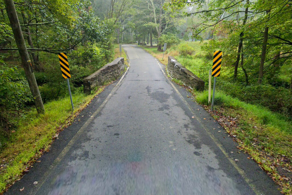 This single-span fieldstone arch bridge has been in continuous use for nearly 200 years. Its semicircular design has endured with little alteration. It was rated โbasically soundโ by county engineers in 1992 and continues to serve local traffic.