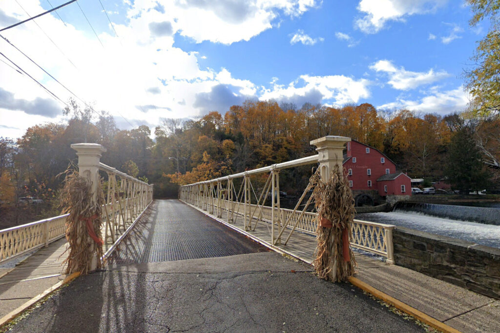 Constructed by the same team as the New Hampton Bridge, this cast and wrought iron truss crosses the South Branch of the Raritan River between the Red Mill Museum and the Hunterdon Art Museum. When the bridge was widened in 1985, its original trusses were preserved as ornamental railings. Today it serves pedestrians and offers one of the most iconic photo spots in the state.